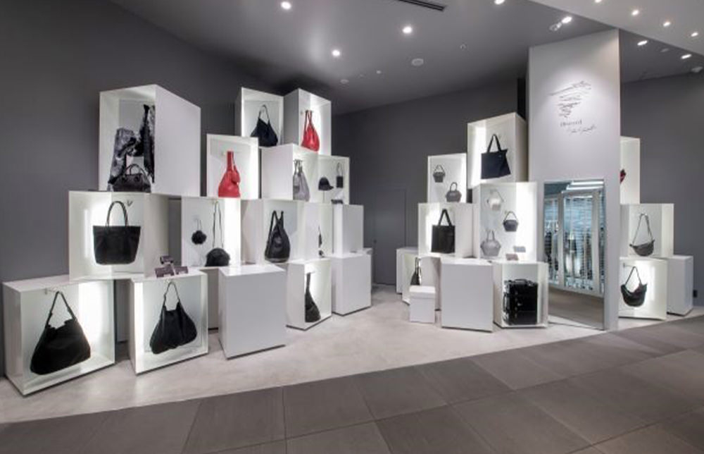คุณโยะจิ ยะมะโมะโทะที่ดึงวงการแบบวิธีด้วยการสร้างเสื้อผ้ามีจิตใจ rebellious spirit มา ทำให้หมวดหมู่แคบลงเป็นเครื่องประดับ และการลองที่แนะนำค่านิยมใหม่ผ่านกระเป๋าและรองเท้าเป็น discord Yohji Yamamoto (ดิซุโคะโดะโยะอุจิยะมะโมะโทะ) ที่ร้านค้าชิบุยะ การตกแต่งภายในก็แสดงความสวยงามสวยงามที่ที่มีลักษณะเฉพาะของญี่ปุ่นที่ใส่เข้าไปข้างในถึงสิ่งของของ "สุนทรียศาสตร์ ของความไม่เสร็จสมบูรณ์และ asymmetry" ในแก่นของการสร้างของคุณยะมะโมะโทะและ discord ตู้ขาวในร้านได้รับความคิด arrangement of garden rocks ของสวนญี่ปุ่น ตู้ที่ถูกเสมือนกับการคัดเลือกของ arrangement of garden rocks ซ้อนเป็นกองทำงานในฐานะ "เบื้องหลัง" เพื่อส่งเสริมกระเป๋า ขณะปล่อยการมีตัวตนแรง สีและสิ่งของที่จำกัดแค่ร้านค้าเกิดขึ้นด้วย